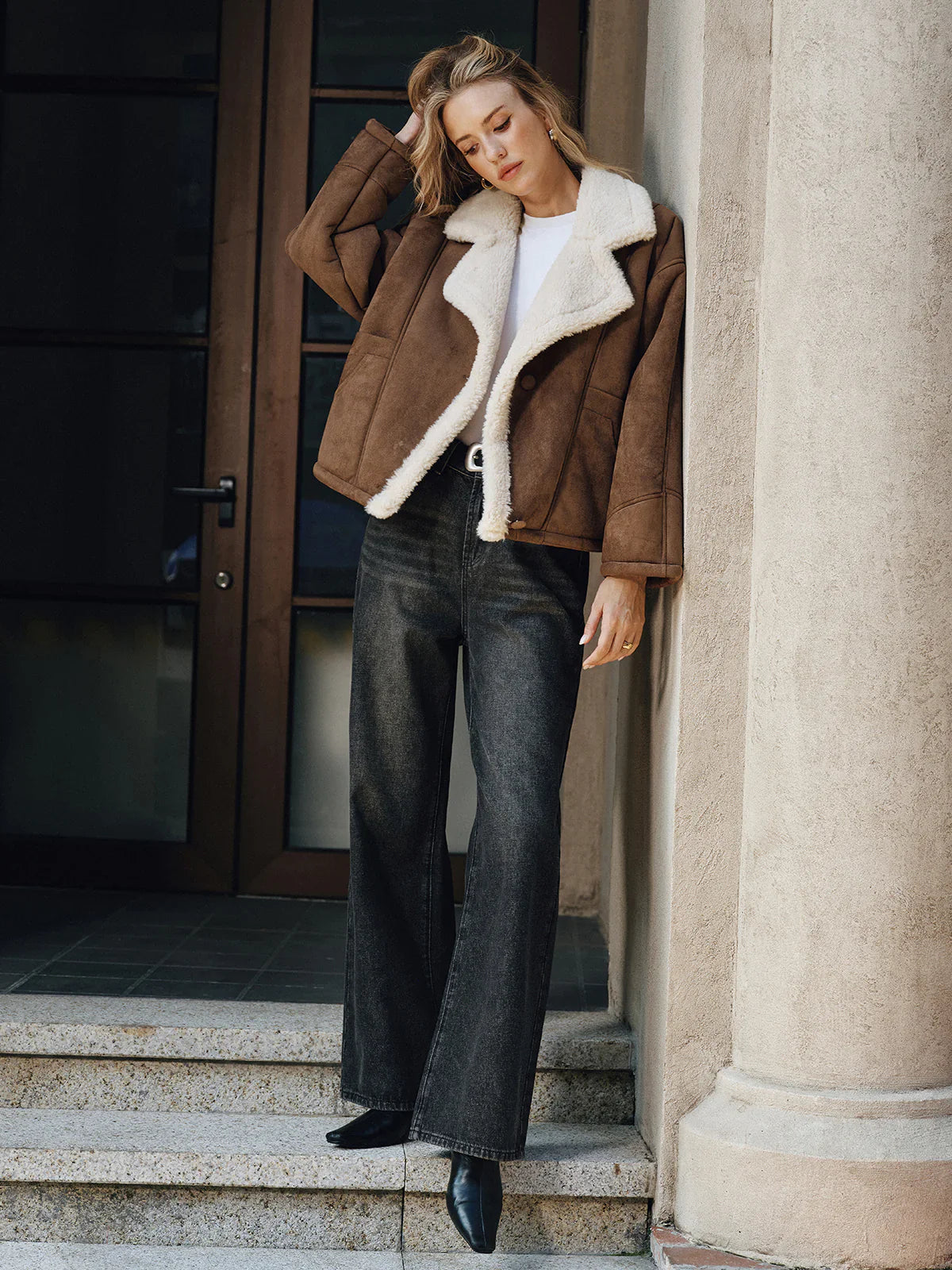 Double-Breasted Fleece Lined Faux Leather Longline Coat